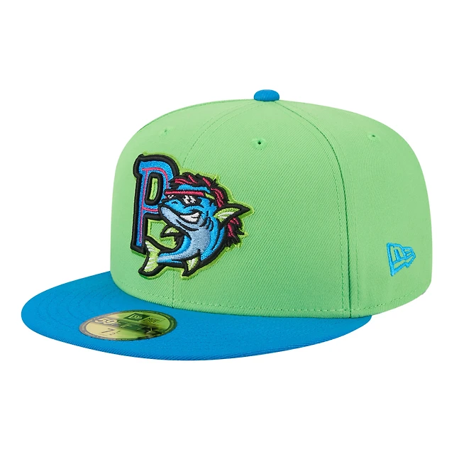 Casquette ajustée 59FIFTY pour homme New Era Neon Green Pensacola Blue Wahoos Theme Nights