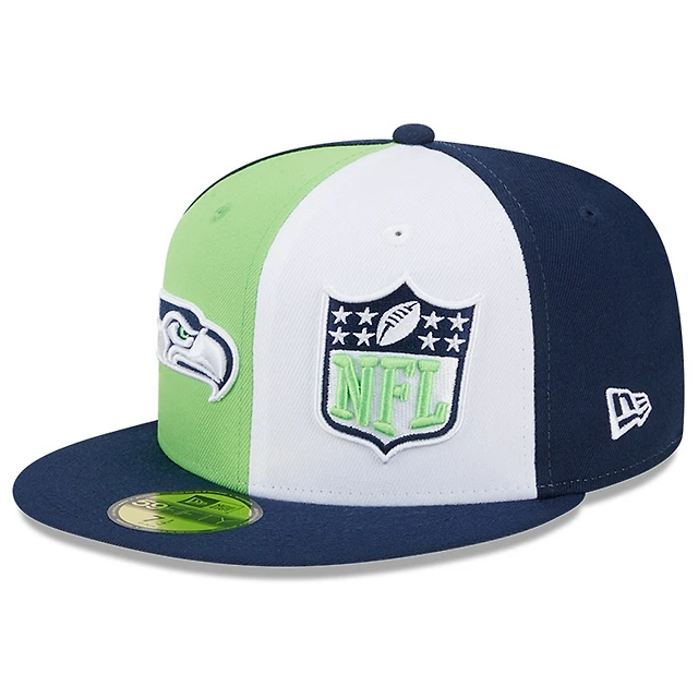 Casquette ajustée 59FIFTY Sideline Seattle Seahawks 2023 New Era pour homme, vert fluo/bleu marine College