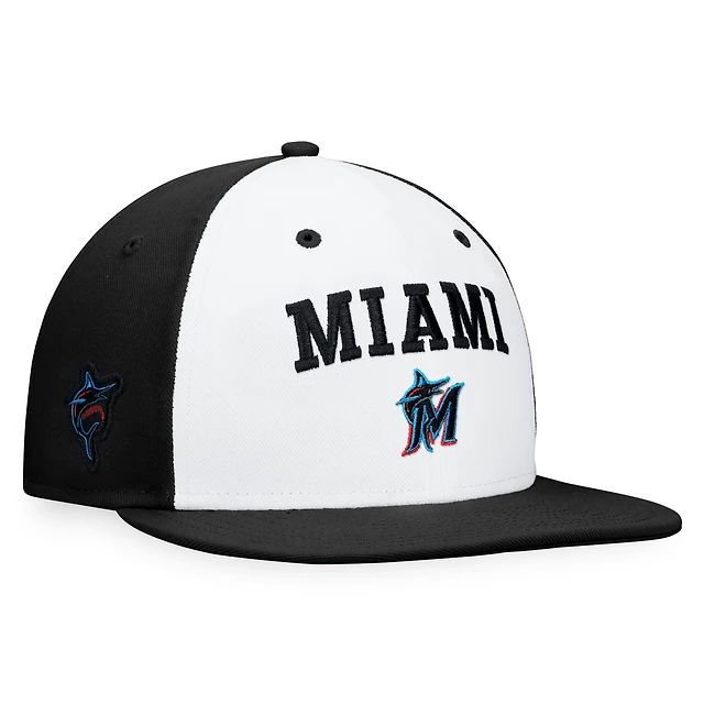 Casquette ajustée à blocs de couleurs emblématiques Miami Marlins Fanatics blanc/noir pour hommes