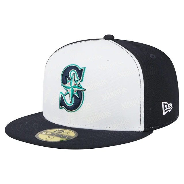 Casquette ajustée New Era 59FIFTY blanche/bleu marine pour homme, Seattle Mariners Repeat