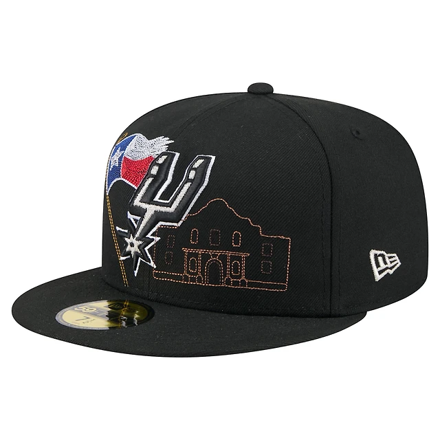 Casquette ajustée New Era 59FIFTY noire pour homme avec motif State Stitch des San Antonio Spurs