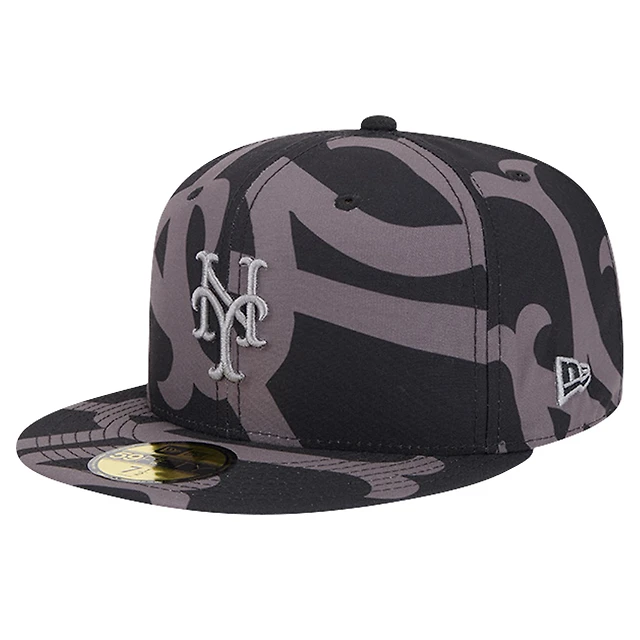 Casquette ajustée New Era noire avec logo Fracture 59FIFTY des Mets de York pour hommes