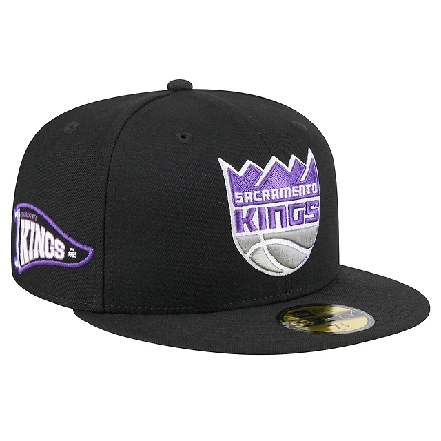 Casquette ajustée noire New Era Sacramento Kings Throwback Pennant 59FIFTY pour homme