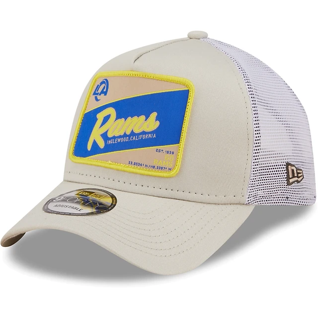 Casquette camionneur 9FORTY Snapback Los Angeles Rams Happy Camper A-Frame New Era pour homme kaki/blanc