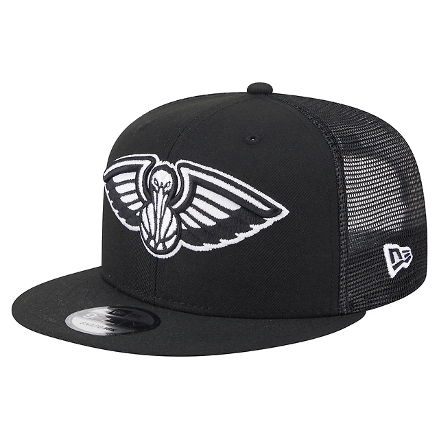 Casquette camionneur à pression New Era 9FIFTY noire des New Orleans Pelicans pour homme