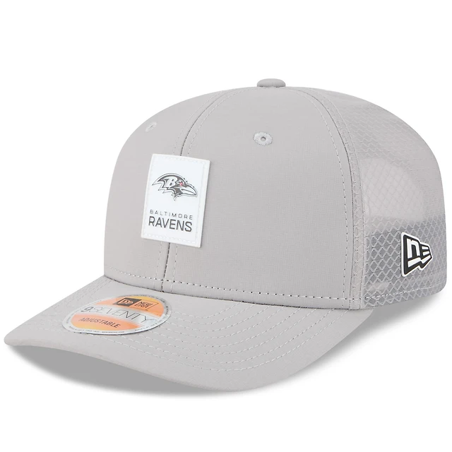 Casquette camionneur ajustable 9SEVENTY Sideline 2025 grise des Baltimore Ravens de New Era pour homme