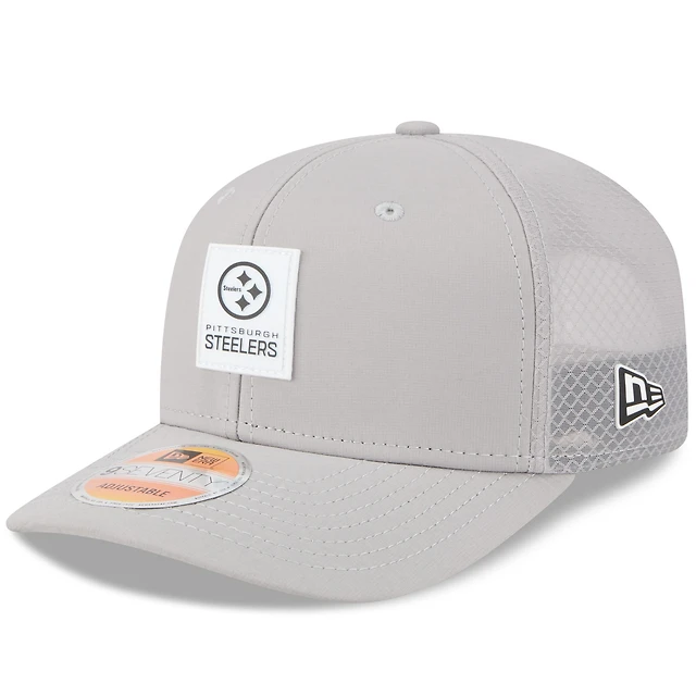 Casquette camionneur ajustable grise New Era 9SEVENTY des Pittsburgh Steelers 2025 Sideline pour homme