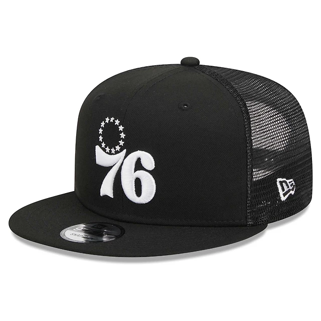 Casquette de camionneur à visière snapback 9FIFTY Philadelphia 76ers noire New Era pour homme