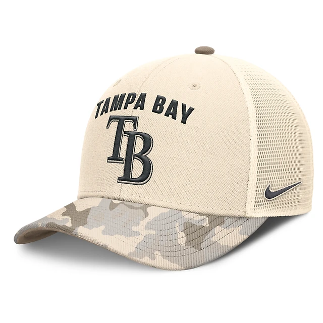 Casquette de camionneur ajustable Nike Natural Tampa Bay Rays Camo Natural Pack Rise pour homme
