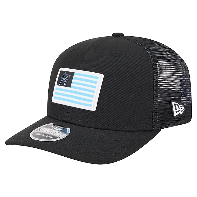 Casquette extensible à bouton-pression New Era noire Miami Marlins 9SEVENTY pour homme