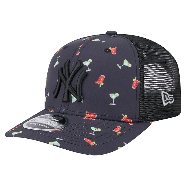 Casquette extensible à bouton-pression New Era noire New York Yankees Adventure Drinks Pattern 9SEVENTY pour homme
