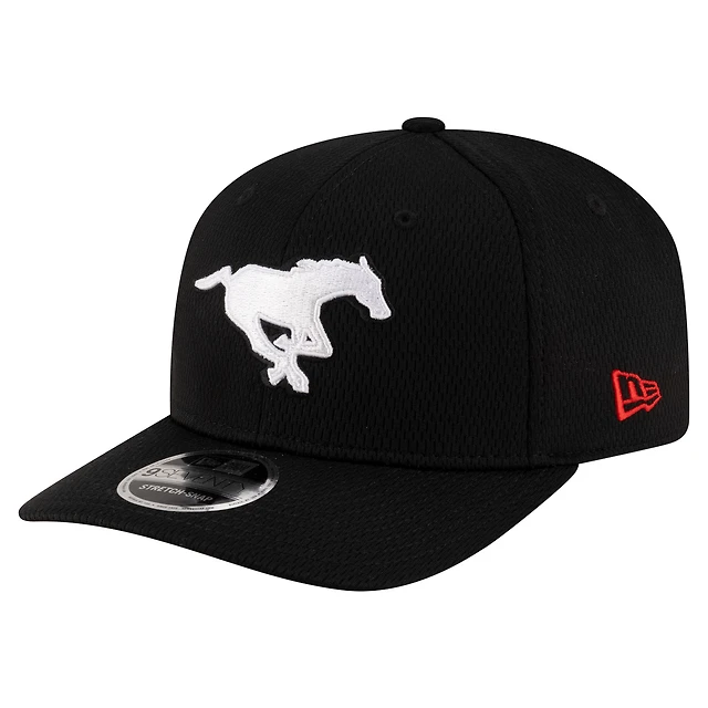 Casquette extensible noire à boutons-pression New Era pour homme, modèle Sideline Alternate 9SEVENTY des Stampeders de Calgary