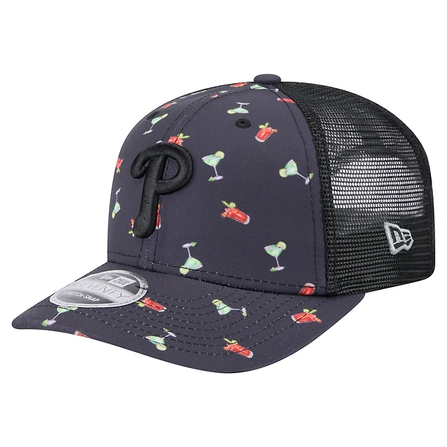 Casquette extensible noire New Era 9SEVENTY pour homme, motif Adventure Drinks des Philadelphia Phillies