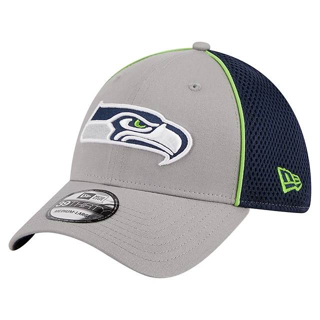 Casquette flexible 39THIRTY New Era pour hommes, gris/bleu marine universitaire, Seattle Seahawks Pipe