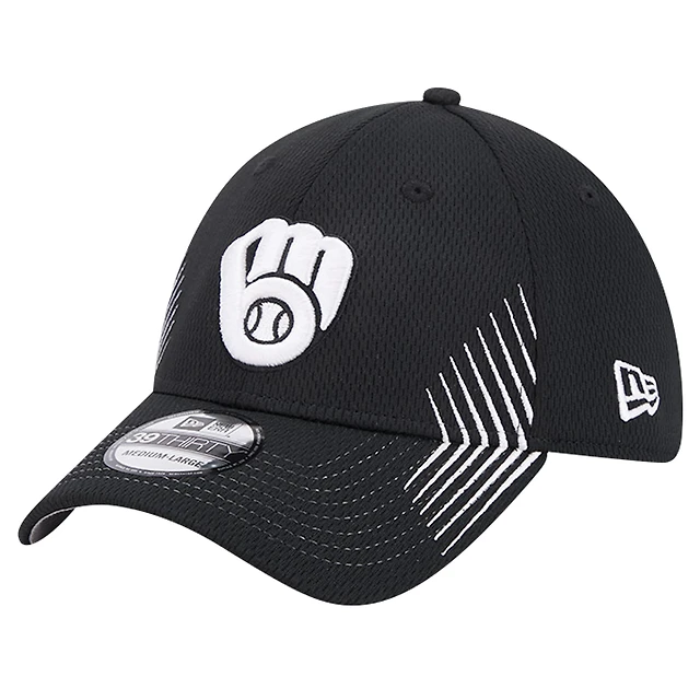Casquette flexible Active Dash Mark 39THIRTY des Milwaukee Brewers New Era noire pour hommes