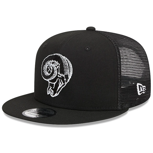 Casquette New Era Los Angeles Rams Throwback Main Trucker 9FIFTY Snapback noire pour homme