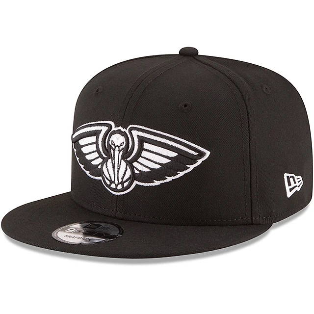 Casquette New Era New Orleans Pelicans noire et blanche avec logo noir et blanc 9FIFTY ajustable Snapback pour homme