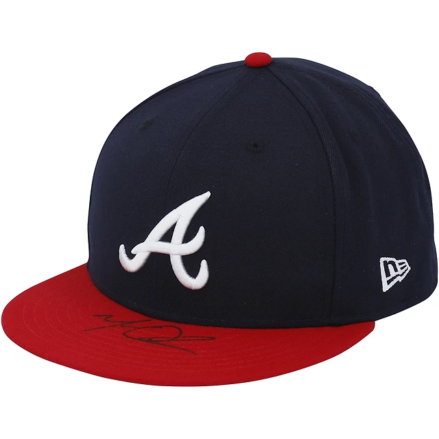 Casquette New Era rouge et bleu marine dédicacée par Matt Olson des Atlanta Braves