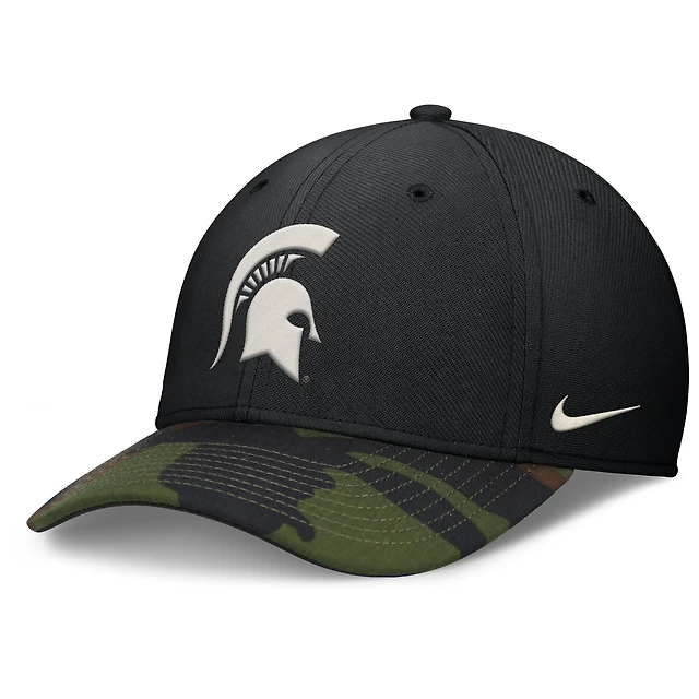 Casquette Nike noire/camouflage Michigan State Spartans 2024 Military Appreciation Rise Swoosh Performance Flex pour homme