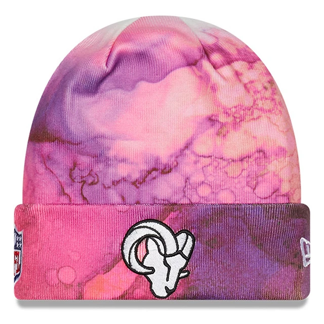 Casquette pour homme Los Angeles Rams 2022 NFL Crucial Catch rose de New Era - Tuque en tricot à revers