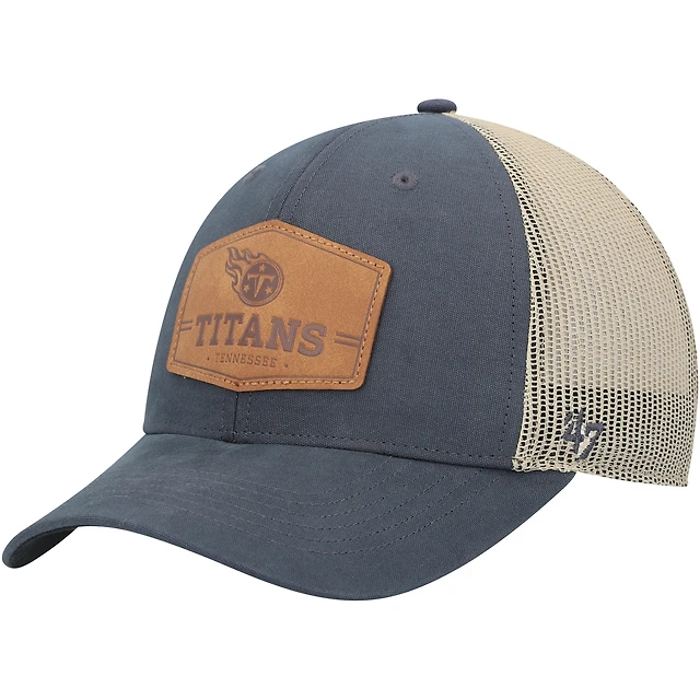 Casquette réglable de camionneur en cuir brut '47 marine/naturel Tennessee Titans pour hommes