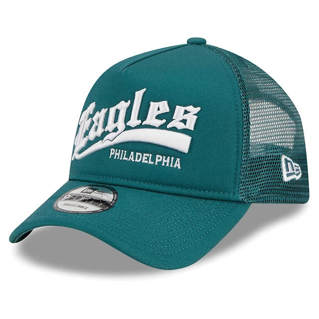 Casquette réglable New Era pour hommes, vert nuit, Caliber Trucker 9FORTY des Eagles de Philadelphie