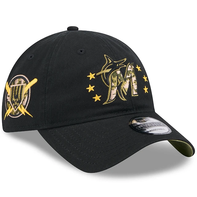 Casquette réglable noire Miami Marlins 2024 Armed Forces Day 9TWENTY New Era pour homme
