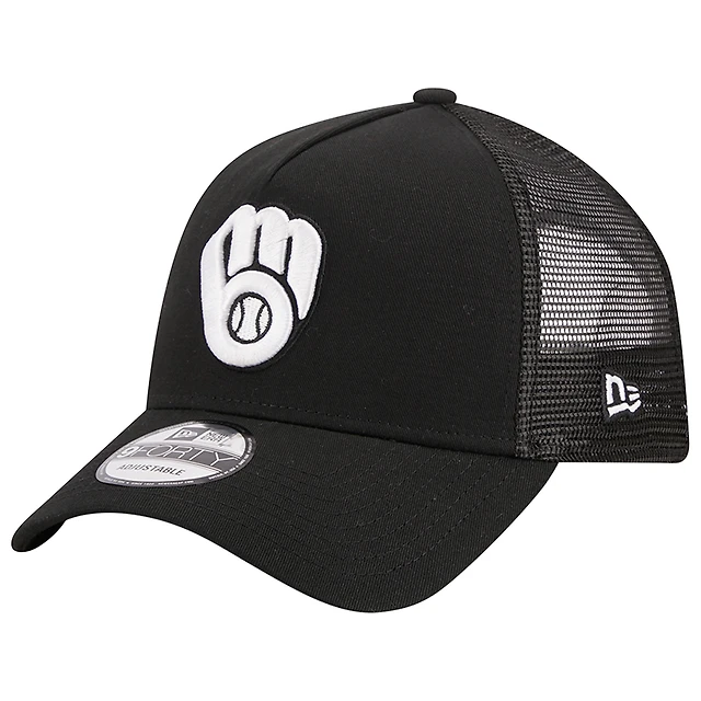 Casquette réglable noire Milwaukee Brewers A-Frame 9FORTY Trucker New Era pour hommes