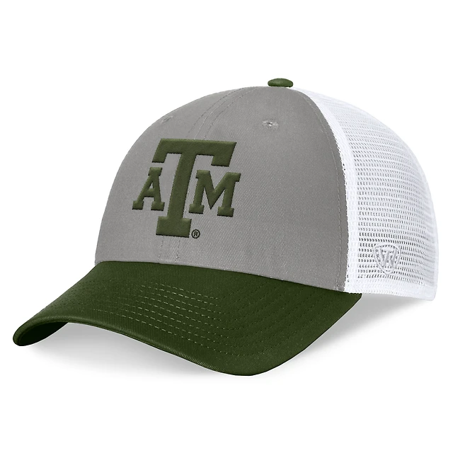 Casquette réglable pour hommes, haut du monde, gris/vert, Texas A&M Aggies OHT, badge d'appréciation militaire, camionneur