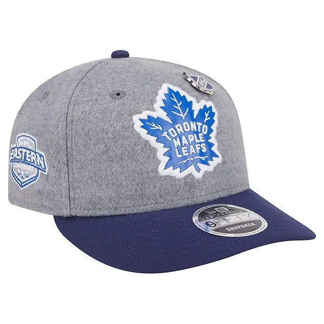 Casquette snapback 9FIFTY grise/bleue New Era pour homme, motif à pin en laine des Maple Leafs de Toronto