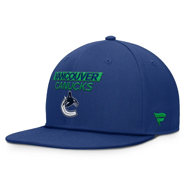 Casquette Snapback authentique Pro Rink Prime Fanatics bleue pour homme des Vancouver Canucks