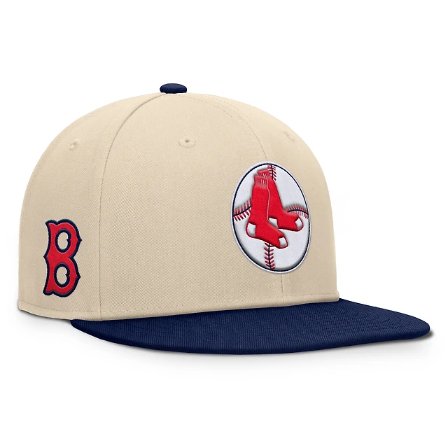 Casquette snapback Bounder Fanatics pour homme, couleur naturelle/bleu marine, collection Cooperstown des Red Sox de Boston