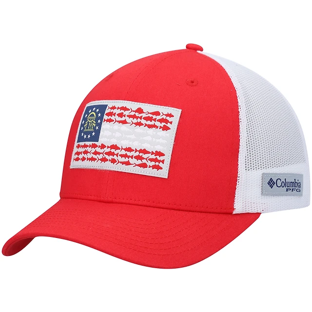 Casquette Snapback de camionneur en maille avec drapeau de poisson rouge Columbia PFG pour hommes