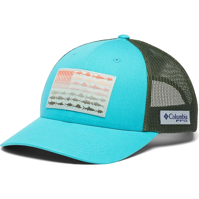 Casquette Snapback de camionneur en maille avec drapeau de poisson sarcelle Columbia PFG pour hommes