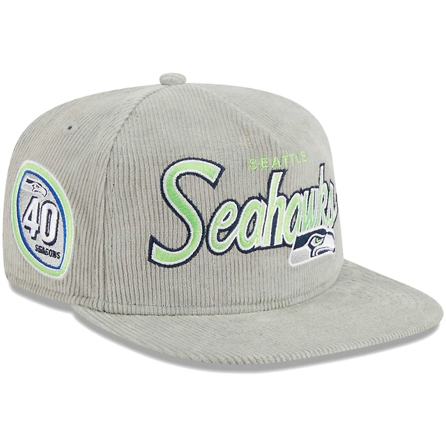 Casquette snapback Golfeur Seattle Seahawks en velours côtelé New Era grise pour homme