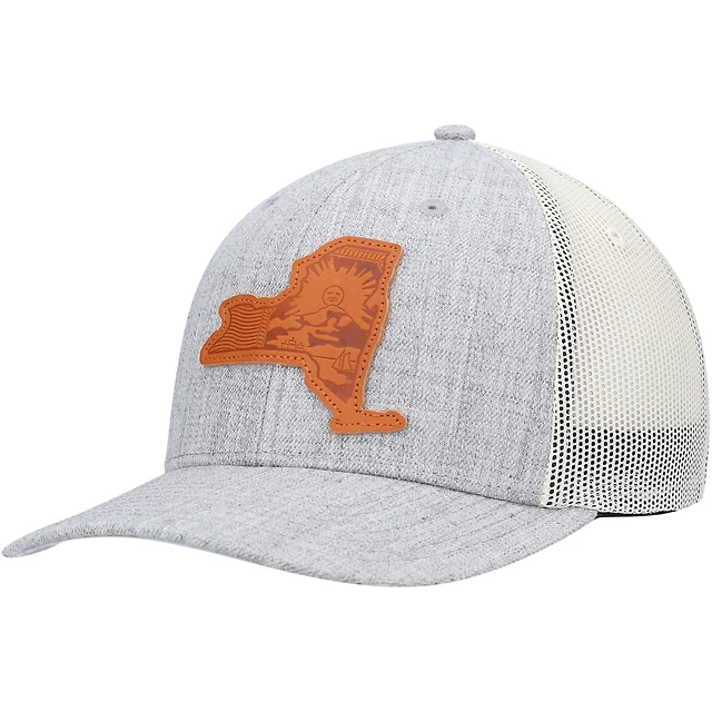Casquette Snapback Local Crowns en cuir gris chiné avec écusson de l'État de New York pour homme