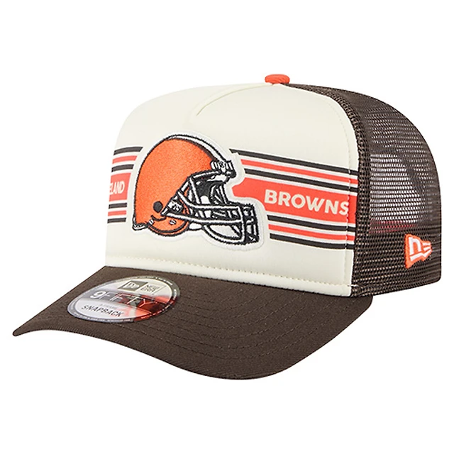 Casquette snapback New Era 9FIFTY Trucker à motif bannière des Cleveland Browns, crème/marron, pour homme