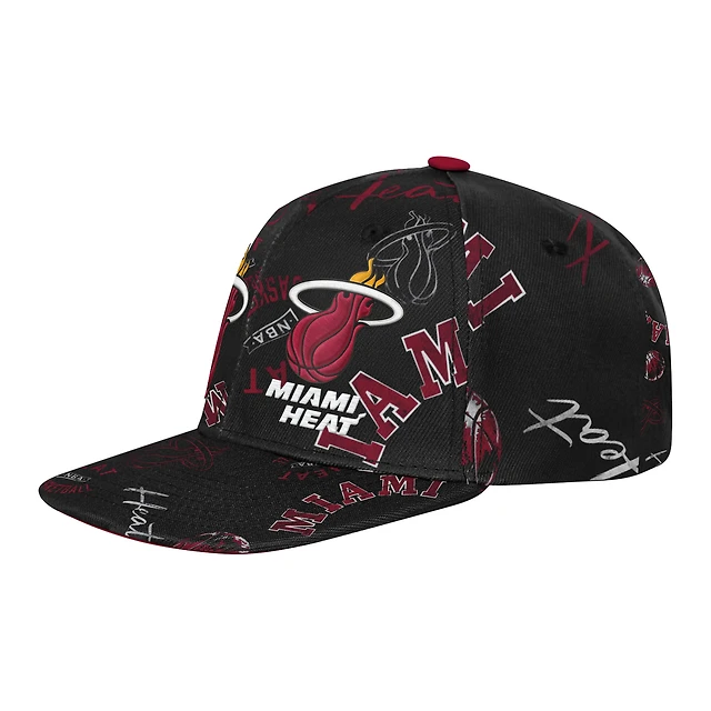 Casquette snapback noire à imprimé intégral Miami Heat Street Hooper pour jeunes Outerstuff