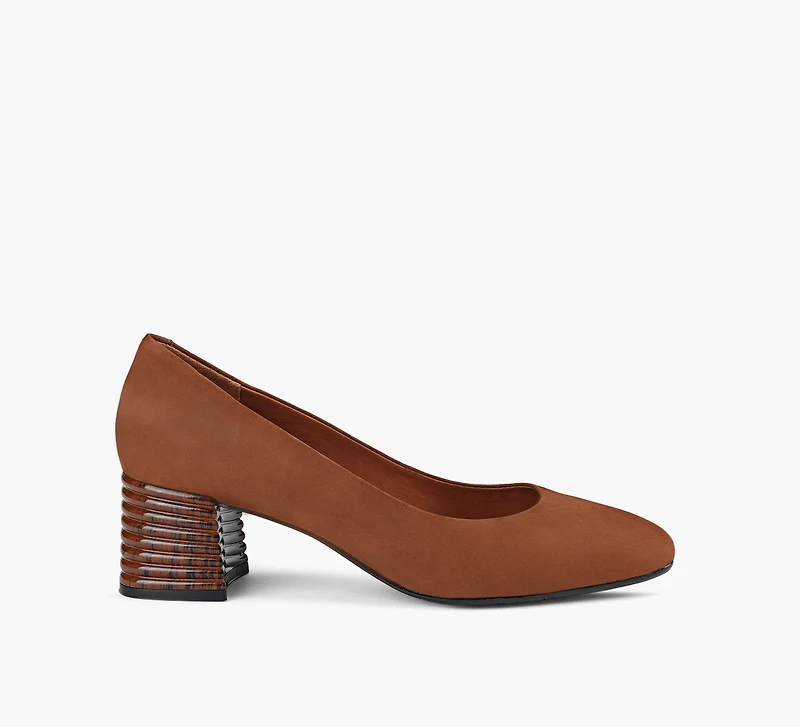 Just because a style is deemed a classic, doesn't mean it has to be basic. And on that note, allow us to introduce Browns' Chai pump. Adopting signatures from the ageless design, this pair features a sleek round toe and high-quality construction. What makes it stand out, however, lies in the ribbed low block heel, licked with a contrasting gleam. We're certain these will leave a lasting impression, whether at the office or in the city streets.