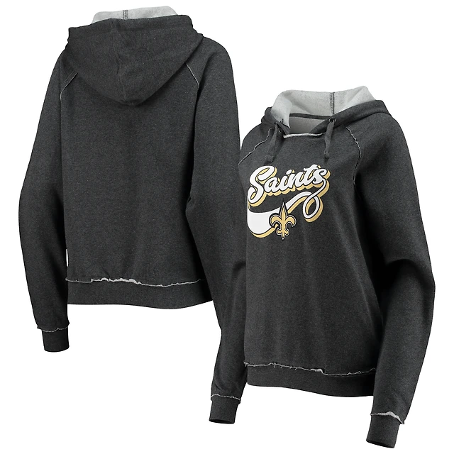 Chandail à capuchon New Era Charcoal Orleans Saints Script Fleece Raglan pour femme