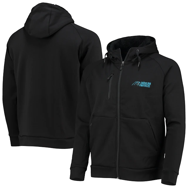 Chandail à capuchon raglan trois mélanges entièrement zippé Carolina Panthers Shag pour hommes Dunbrooke, noir