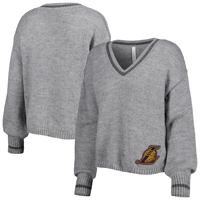 Chandail à encolure en V tri-mélange manches lanterne Los Angeles Lakers Scarletts gris Lusso pour femme
