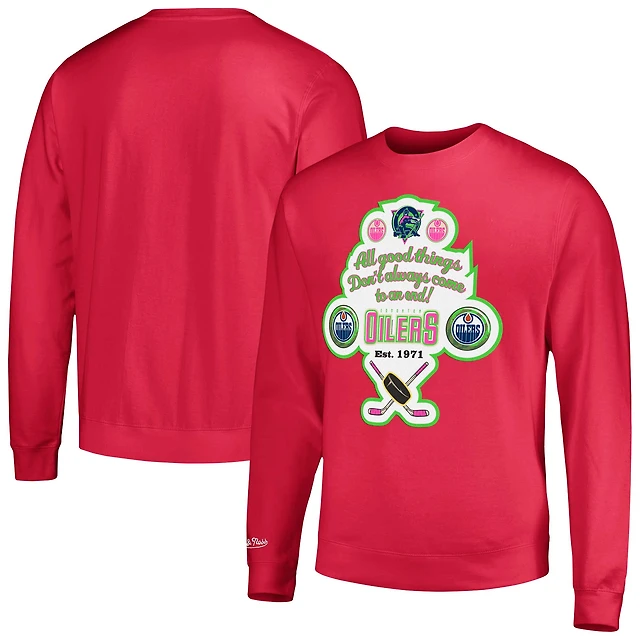 Chandail molletonné pour homme Mitchell & Ness Watermelon Sugar High Crew des Oilers d'Edmonton, rose