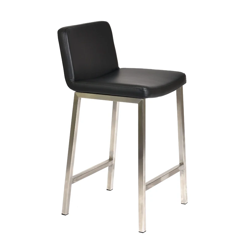 Sleek and sophisticated, this counter stool features a smooth leatherette seat and backrest paired with a brushed stainless steel frame for a clean, contemporary look. Its minimalist silhouette and supportive design make it a versatile choice for mo