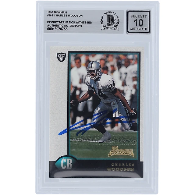 Charles Woodson Oakland Raiders Autographed 1998 Bowman #181 Beckett Fanatics Witnessed Authenticated 10 Rookie Card