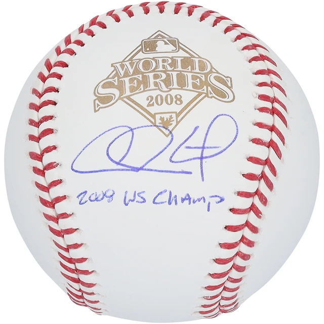 Chase Utley, joueur des Philadelphia Phillies, a autographié le logo de la Série mondiale 2008 avec l'inscription « 2008 WS Champs »