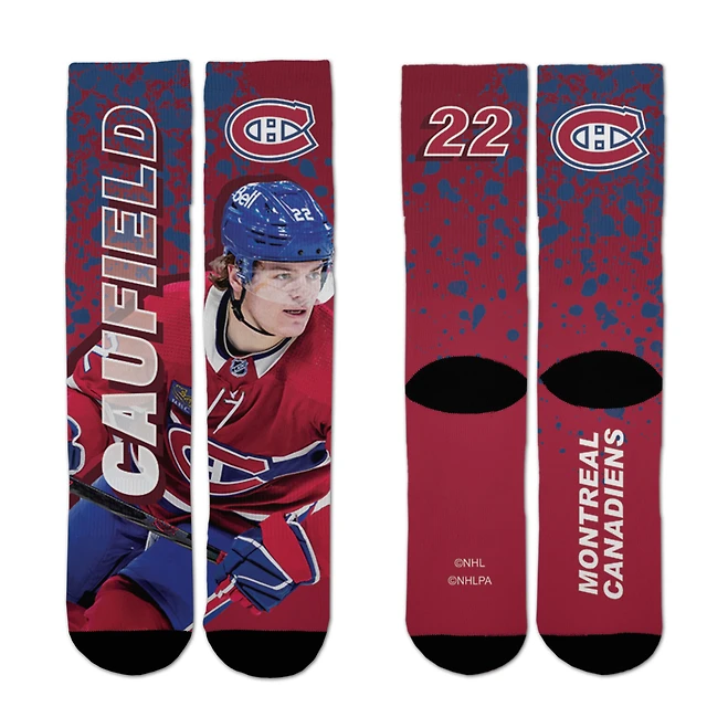 Chaussettes unisexes pour pieds nus Cole Caufield bleues des Canadiens de Montréal Road Warrior Crew