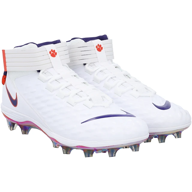 Chaussures à crampons Nike Force Pro 2 blanches/violettes de l'équipe des Clemson Tigers issues du programme football