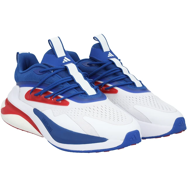 Chaussures adidas AlphaBoost V2 blanches/bleues marines du programme d'athlétisme des Kansas Jayhawks