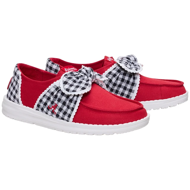 Chaussures décontractées à enfiler pour femme Hey Dude Crimson Tide Wendy Bow, couleur cramoisie/blanche, Alabama
